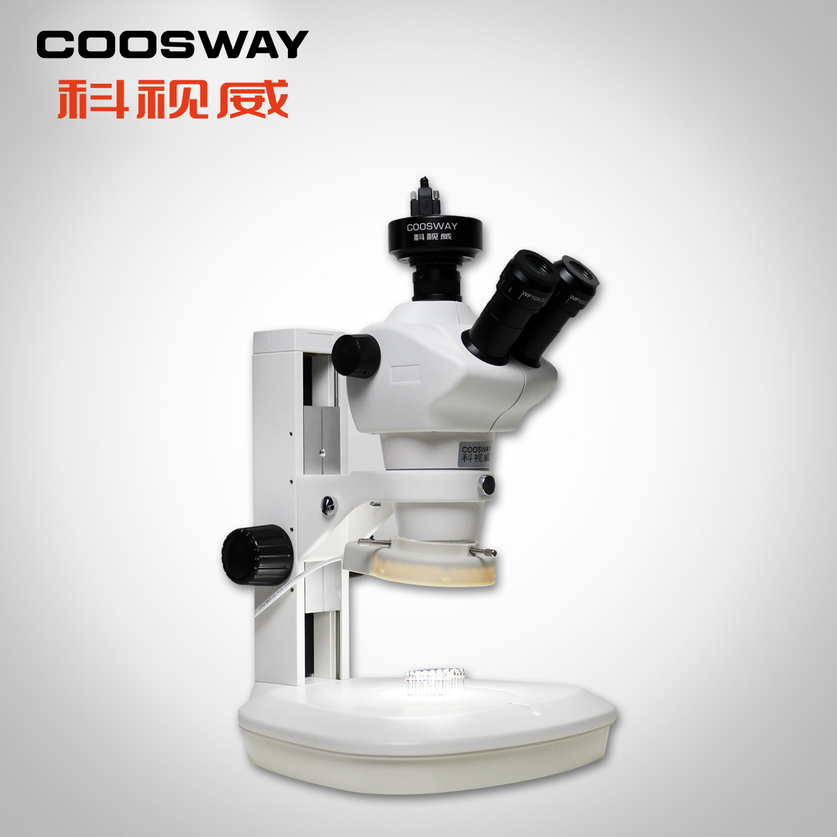 觀察頭 | 360°可轉,鉸鏈(liàn)式三目,三目(mù)為圖像(xiàng)輸出口;可連(lián)接各種顯微攝像頭(tóu) |