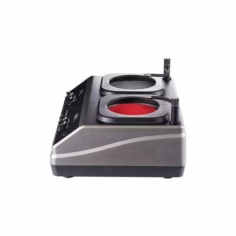 本磨拋(pāo)機為雙盤(pán)雙控雙電機,可兩人同時操作使用,適用於對金相試樣進(jìn)行預磨、研磨和拋光操作。本機(jī)可實現無極變速和轉向隨(suí)意切換,左右磨(mó)拋盤分別(bié)可獲得50-1500轉/分鍾之(zhī)間的轉速,從而使本機具有更加廣泛的應用性。是用戶用來製作金相試樣必不可少的設備。本機帶有冷卻裝置,可以在(zài)預(yù)磨(mó)時對試樣進行冷卻,以防止因試(shì)樣(yàng)過熱而破壞金相組織。